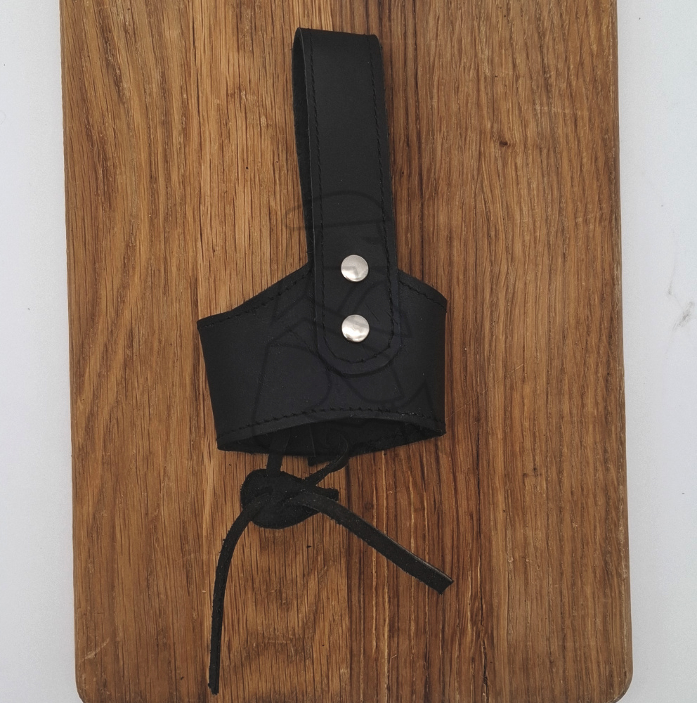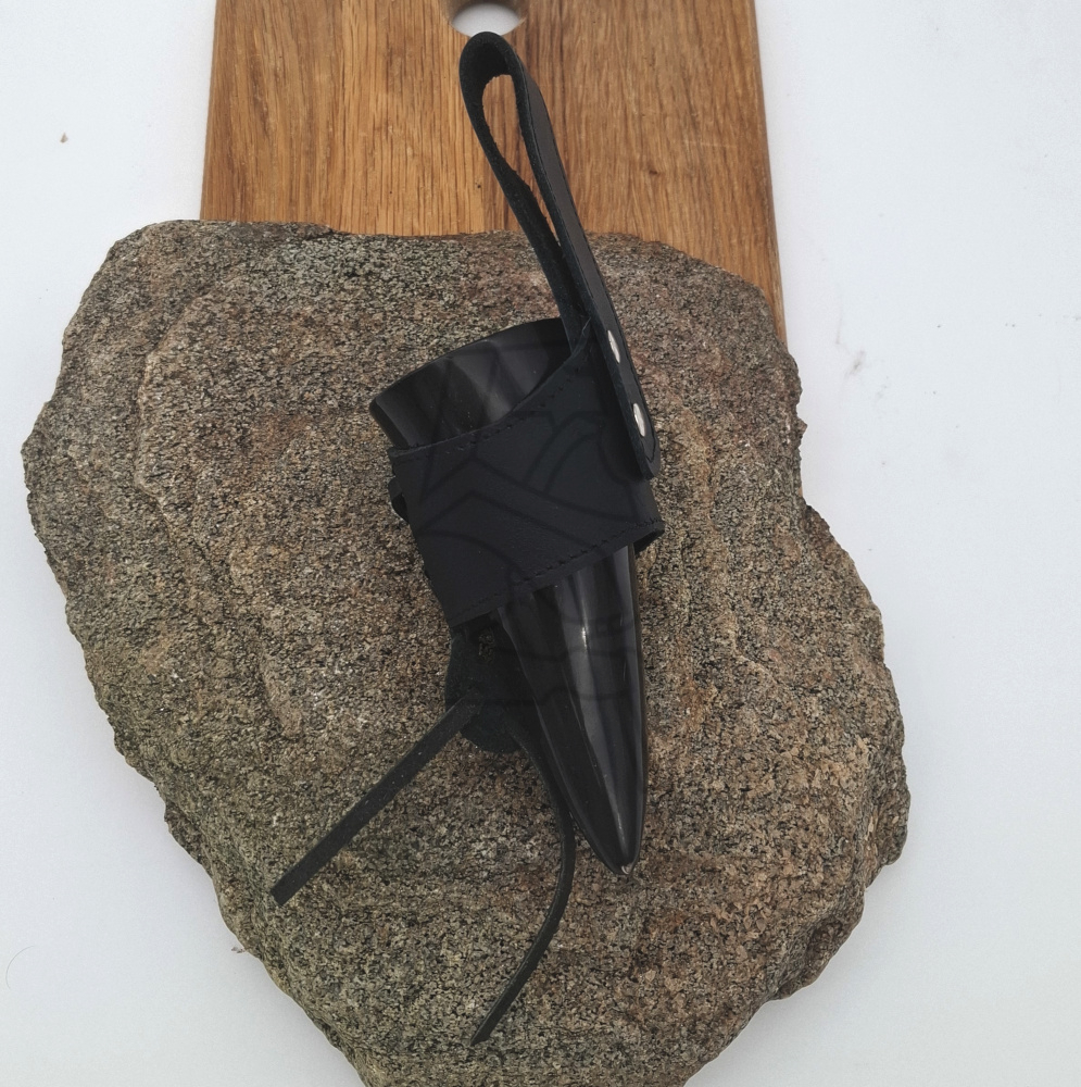 Håndlavet af robust læder, designet til at bære horn sikkert i bæltet. Den klassiske stil passer perfekt til historiske reenactments eller daglig brug.