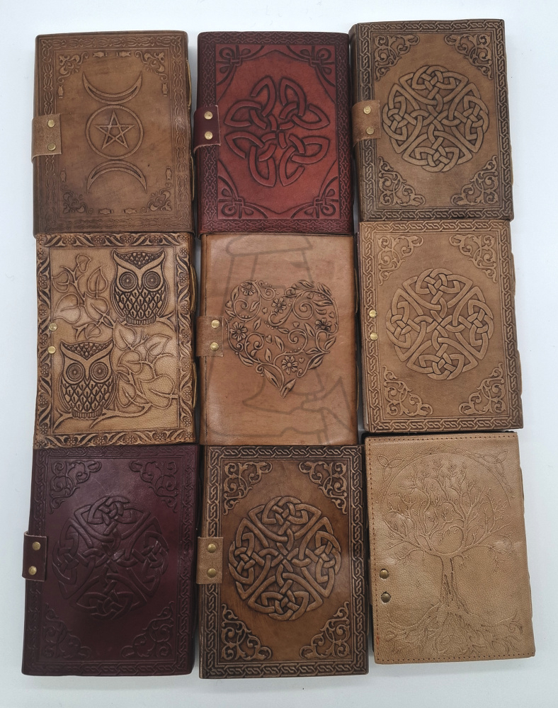 Opdag elegance og funktionalitet med vores læderindbundne notesbøger, der måler 17,5 cm i højden, 13,5 cm i længden og 3 cm i bredden, fyldt med 100 sider af groft, rustikt papir. Vælg blandt ni unikke designs, hvor hvert design afspejler håndværk og naturlig skønhed i læderet – fra klassiske mønstre til moderne accenter. Ønsker du variation? Vælg ‘Mix’, og vi sammensætter din ordre med en jævn fordeling af de designs, vi har på lager, så du får en perfekt blanding af stil og individualitet. Denne notesbog er ikke kun et praktisk værktøj, men også en tidløs ledsager til dine tanker og ideer, med en autentisk, rustik charme.